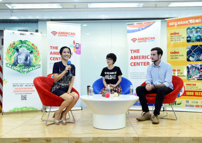 After the presentation, the 8 Wild Rhino Youth Ambassadors and others joined the panel discussion with three guest speakers from the local NGO organisation ENV and CHANGE. The discussion raised a lot of questions of how we can work to protect the rhinos and stop the demand for the horns in Vietnam. In the end, as the speakers agreed, we cannot only educate the young generation, but we have to raise awareness and change the mindset of the adults as well.
